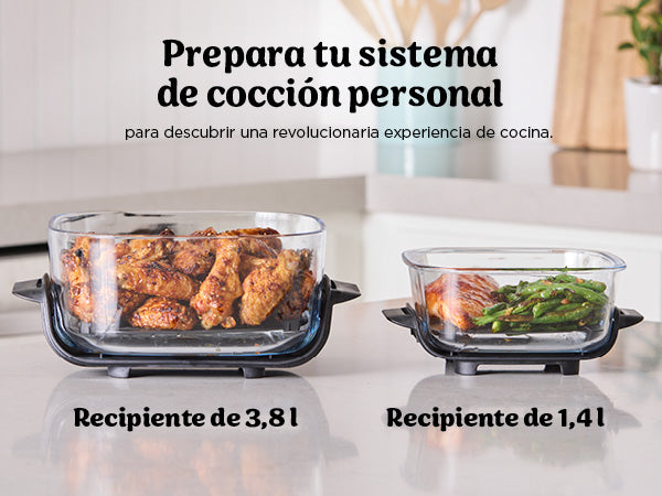 Con una capacidad de 3,8 L y 2 recipientes de vidrio extraíbles, puedes preparar hasta 6 porciones al mismo tiempo.